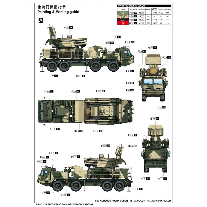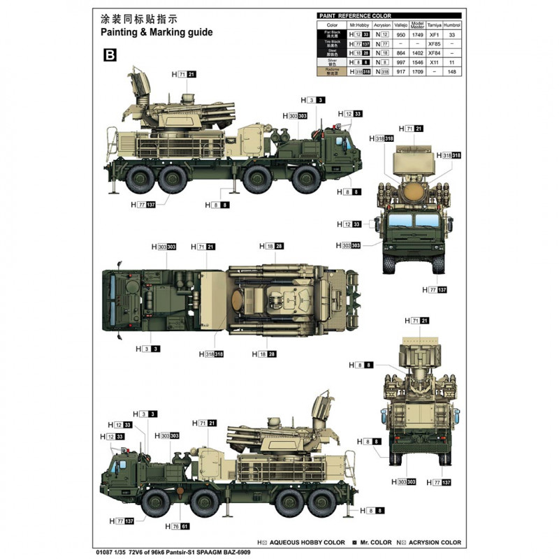 Maquette plastique de camion Russe 72V6 of 96k6 Pantsir-S1 SPAAGM BAZ-6909 1:35