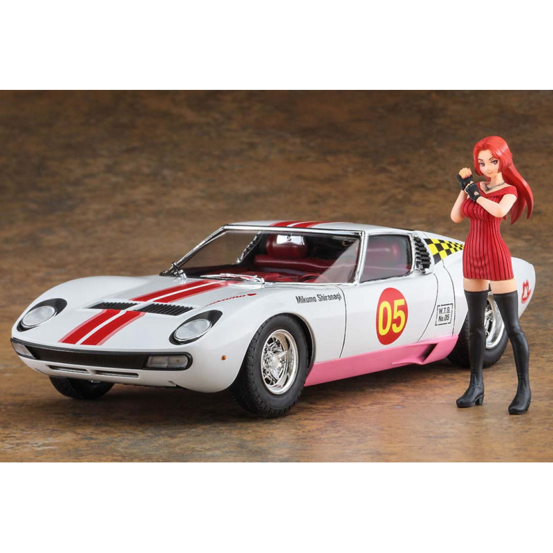 Maquette plastique de voiture Lamborghini Miura P400 avec Figurine Mikumo Shiranagi SP544 1:24