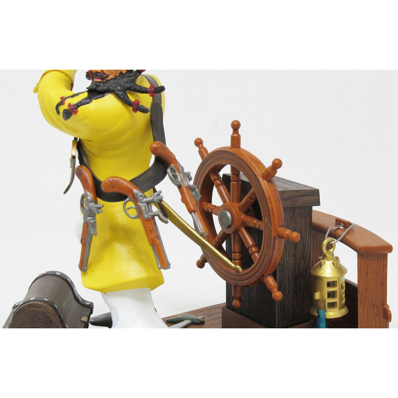 Une maquette vraiment originale du pirate Barbe-noire en posture de combat sur un magnifique socle reprenant des éléments du pont du bateau.