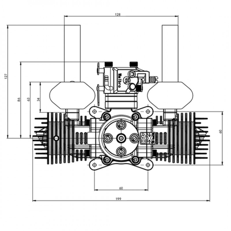 Motor de Avión de Gasolina EPHIL 40cc de Doble Cilindro