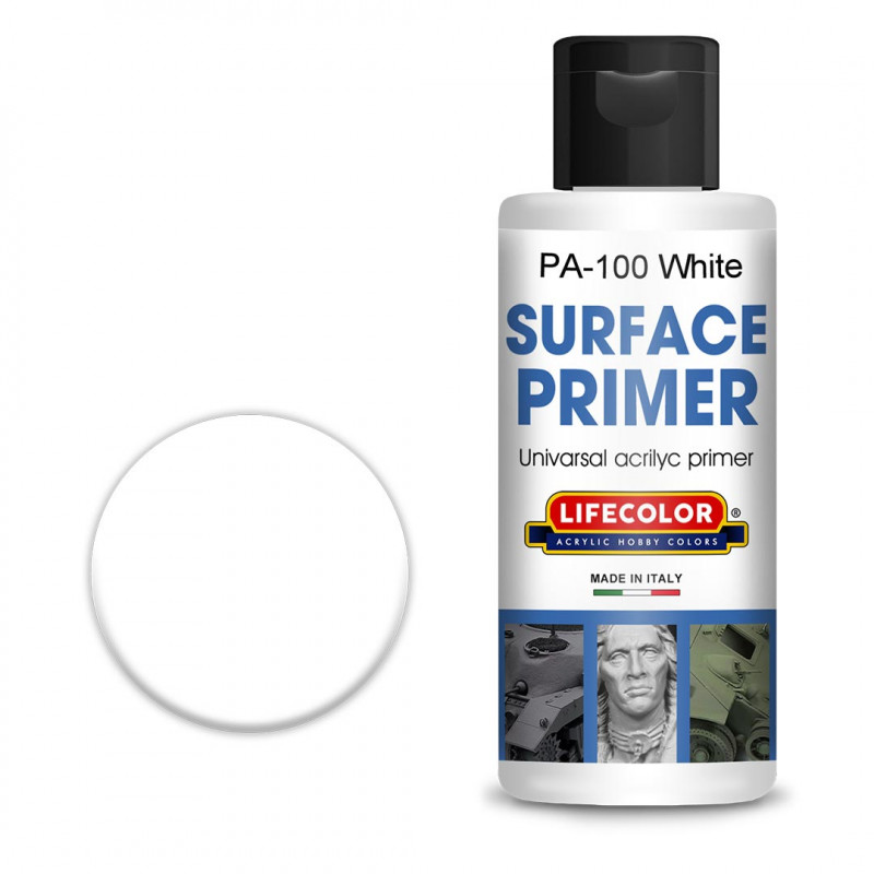 Bote de 100 ml de Imprimación Blanca, para aplicar como primera capa a sus modelos para obtener resultados óptimos con las pinturas LIFECOLOR. Espere a que se seque completamente antes de aplicar la primera capa de pintura. Limpiar las herramientas con agua o «Thinner». Utilizar sobre plástico, resina, vinilo, madera, ropa y cerámica.