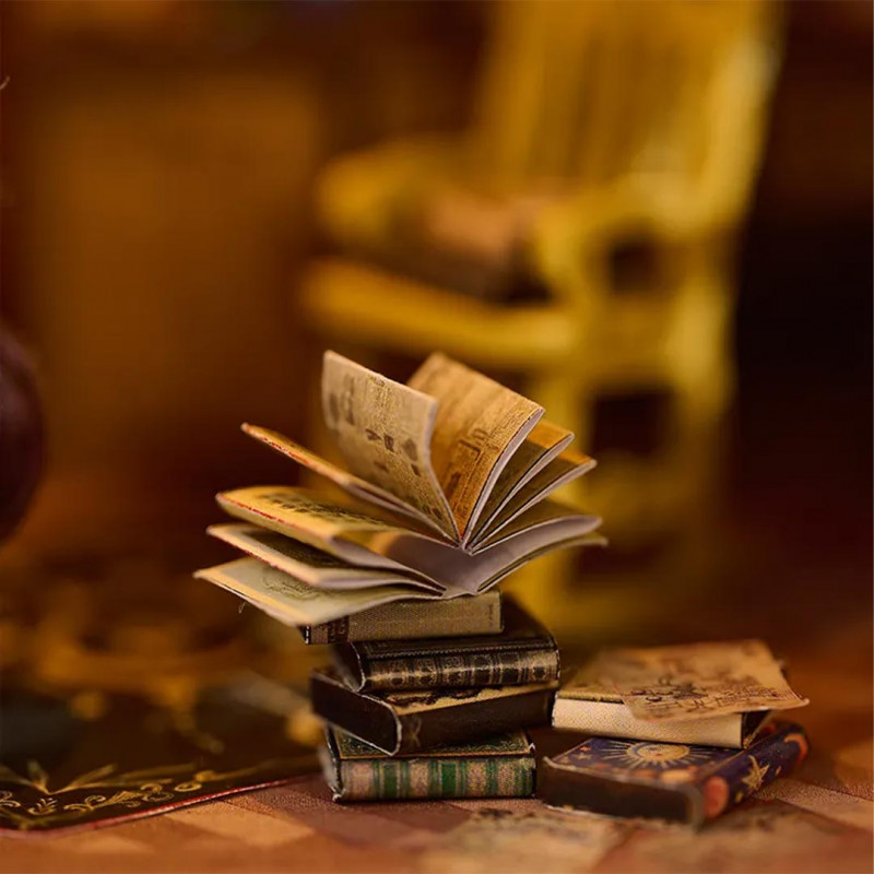 Este casa en miniatura es un diorama en miniatura diseñado para colocarlo sobre un escritorio, una estantería o en una biblioteca.