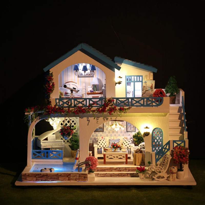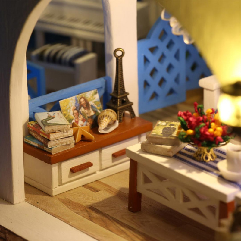 Blue and White Town, Maison miniature ou maison de poupée, principalement en bois, papier et tissu à assembler soi-même (Do It Yourself).