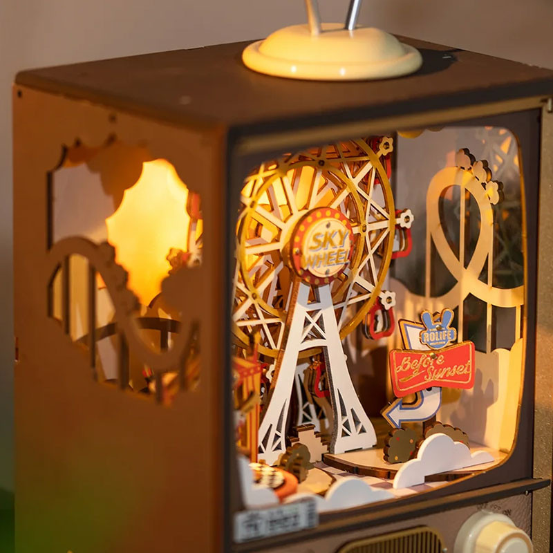 "La TV musicale et animée - Maquette DIY" de ROBOTIME est une création ingénieuse alliant l'art du puzzle en 3D à des mécanismes complexes, vous permettant de construire une superbe maquette d'une télévision vintage qui s'anime et produit de la musique.