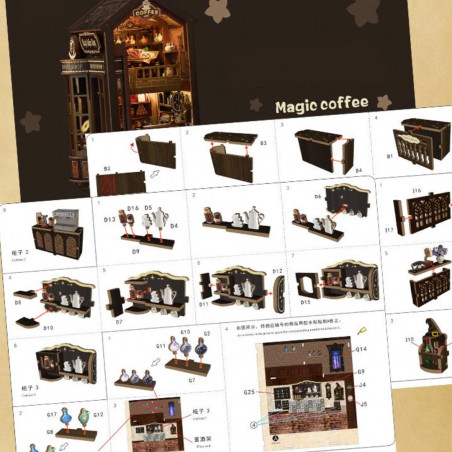 MAGIC COFFEE SHOP, Serre Livres (Book Nook), principalmente de madera para montar uno mismo (Do It Yourself).