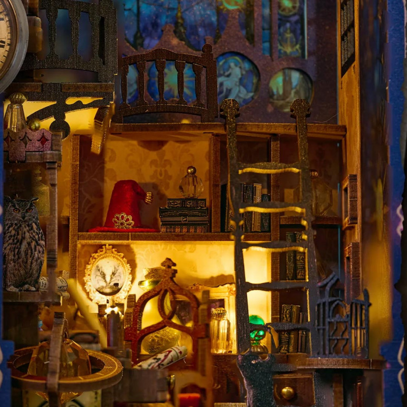 MAGICAL RESEARCH SOCIETY, sujetalibros (Book Nook) principalmente de madera para montar uno mismo (Do It Yourself).