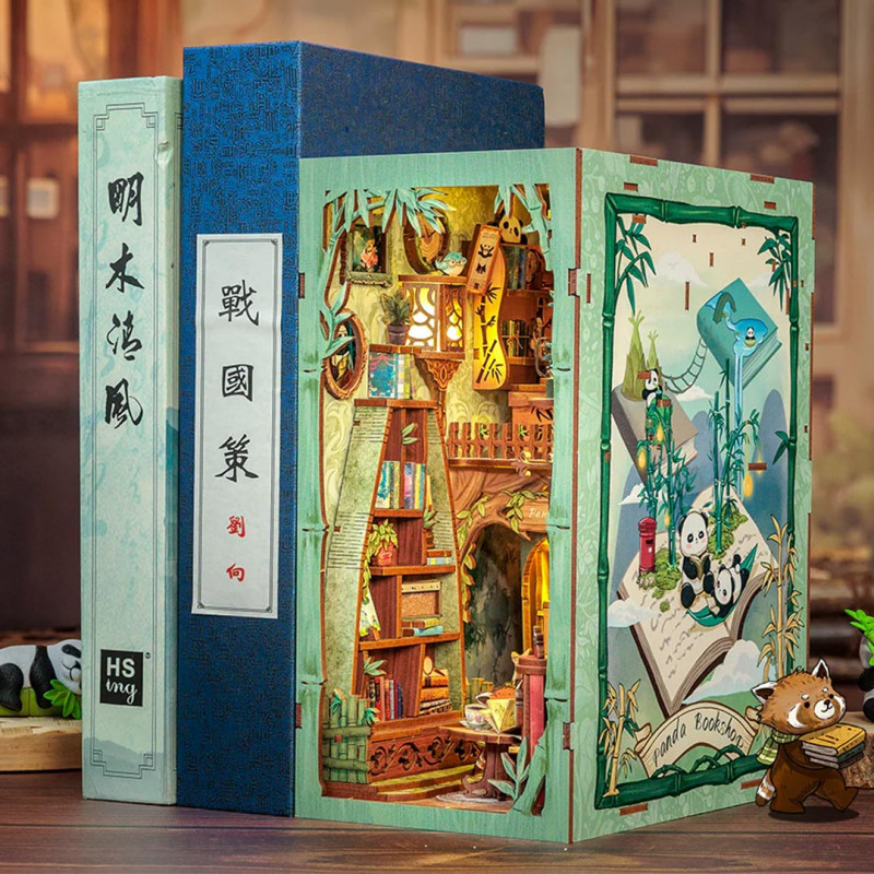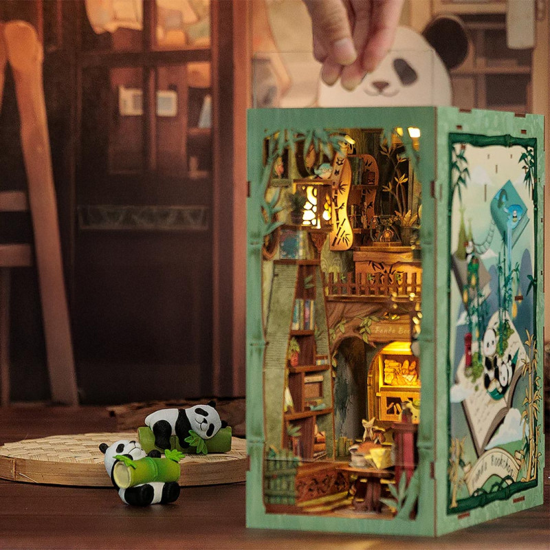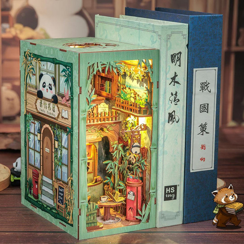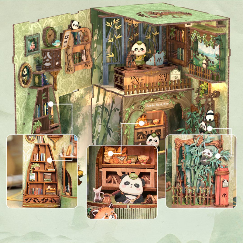 Panda Bookshop, Serre Livres (Book Nook) principalement en bois à assembler soi même (Do It Yourself), par emboitement et collage.