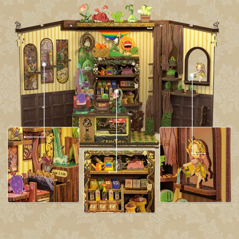 Rompecabezas 3D Soportes para Libros Rincón del Libro Fantasía Tienda de Plantas