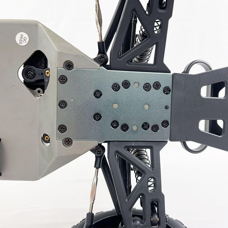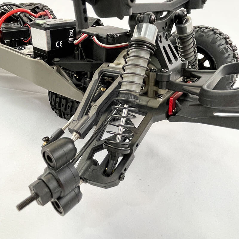 Disponible en 2 coloris différents, ce nouveau châssis 1/10 XL grâce à ses suspensions indépendantes et sa grande garde au sol vous permettra de vous amuser sur tous types de terrains en ce compris du gazon, du bitume, de la terre.