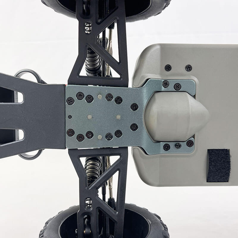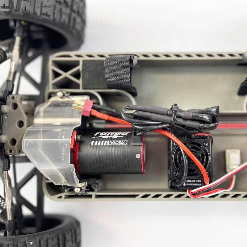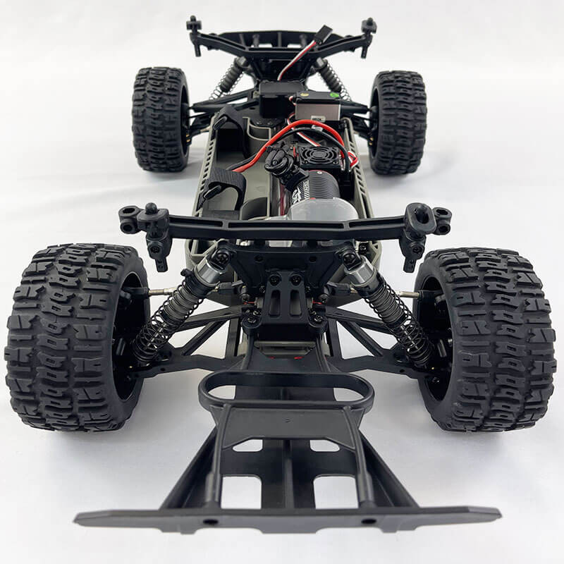 Équipé d’un moteur Brushless 2500 KV, d’un variateur HobbyWing 50A et la toute nouvelle radiocommande MHD4C 4 voies, il a tous les atouts pour satisfaire pleinement petits et grands, et les as de sensation au volant d’une voiture 1/10 de taille XL impressionnante (600 mm de longueur).
